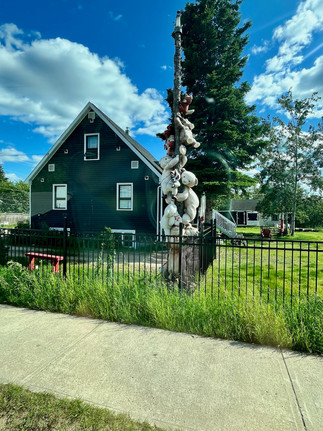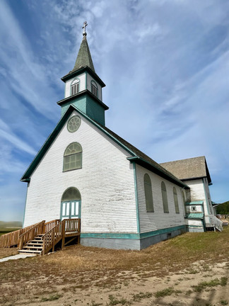 We drove just outside Hay River to the First Nation Hay River Dene Reserve to visit the Historical Hay River Missions Site. This site was first established in 1868. St-Peter’s Anglican Church was here from 1901 to 1909 and at one time also included a large residential school with students from different areas. Ste-Anne’s the Roman Catholic Church was present here from 1938 to 1940. There is a Commemoration Statement outlined on a panel with an apology and acknowledging the pain and loss that has been endured here. There is also a small overgrown cemetery with Spirit Houses - these are burial makers that are thought to have originated from the Cree.