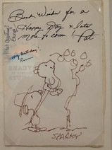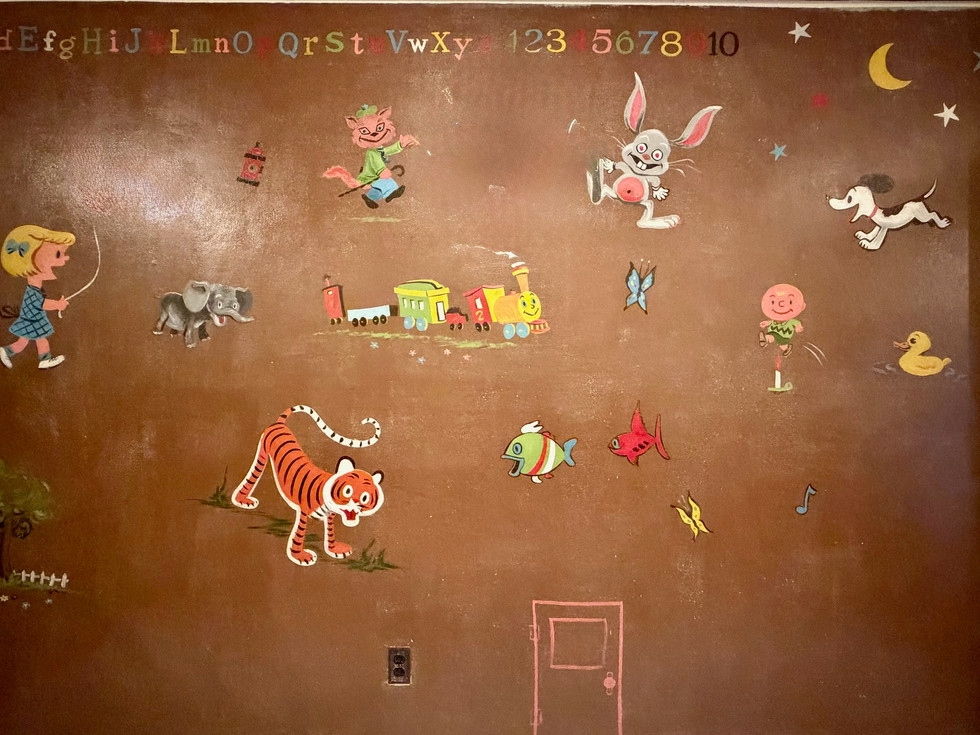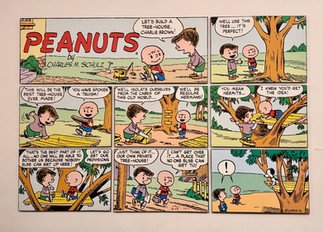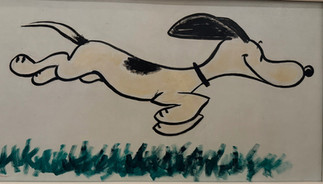 One very interesting story in the museum is about “The Nursery Wall”. In 1951 Charles painted a mural for his daughter Meredith at the family's Colorado Springs home. In 1952 they sold their home and the new owners painted over the mural at least four different times over the years. In 1979, Polly and Stanley Travnicek purchased the home with prior knowledge of this mural. Polly learned from Schulz that he had used oil paints for the mural so she bought cans of sanding liquid and cotton balls and worked on the 96-square-foot wall one inch at a time for 3 months. She stated "I was so happy. For weeks, I'd rub and say, “Where is Charlie Brown? Where is Charlie Brown? I know he's here somewhere? And, finally, there he was!". Once they learned of Schulz's upcoming retirement, the Travniceks donated the mural to the Charles M. Schulz Museum and Research Center for permanent display upon its opening in 2002. The wall was removed from the Travniceks' home in September 2001 and transported to Santa Rosa in a temperature-controlled truck. When you look at this mural you can clearly see Charlie Brown, Snoopy, and Patty.