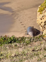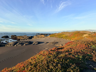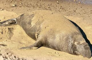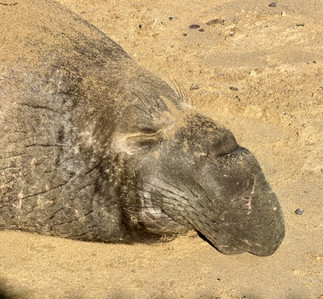 Today we spent the day first visiting part of the Point Reyes National Seashore area. First we hiked the Chimney Rock Trail and had the pleasure of witnessing elephant seals from the cliffs above as they lounged on the beach. We spotted a mama seal laying down below with her two babies, what beauty. We also saw a male elephant seal making his way along the beach running away from the crashing waves. We walked down the trail to the beach and had an up close meeting with three large elephant seals, which we think may have been a family of dad, mom, and an almost as large playful juvenile. They were snorting, yawning, flicking sand on themselves and the occasional rolling around movement. Sprawled out on the beach like that, barely moving, they seemed lazy. I imagine at that size they have few predators out of the water. Elephant seals are massive. The males can weigh between 4,400 to 6000 pounds and the females between 1300 to 1900 pounds. Amazingly they can dive down to 2000 feet which we read that at this depth most animals would explode. Their dives can last over half an hour and the maximum time between breaths is 90 minutes. They spend the majority of their lives in the ocean eating, sleeping, and traveling.