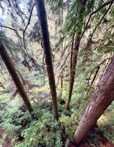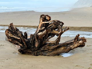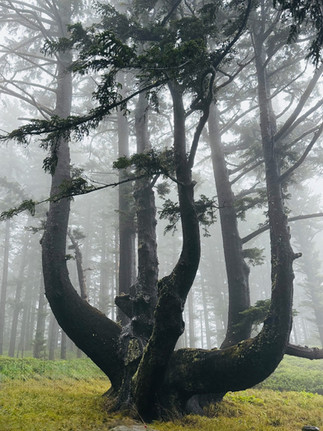 The next day we drove to The Octopus Tree located just outside Tillamook on Cape Meares. This tree is a Sitka Spruce believed to be between 250 and 300 years old. On that day it was rainy and foggy and the wet atmosphere we thought added to the tree’s mystique. This tree branches make a 90 degree turn at ground level and then reach vertically straight upwards. The tree is quite impressive at 105 feet tall with a circumference of 46 feet. What makes this tree most intriguing is that it has no central trunk. It extends from a central base but instead of shooting straight up with a central trunk, the body of the tree splits into a number of smaller trunks. What has caused the shape of this tree has been debated for many years as to whether it is due to natural events or influenced by Native Americans. It is said that native Americans in this area trained trees into an assortment of thick vertical trunks. These trees are common in the Pacific Northwest, and are known as culturally modified trees. Native Americans created these trees to hold canoes with corpses, in a practice known as "tree burial” and were also made to mark important places.
