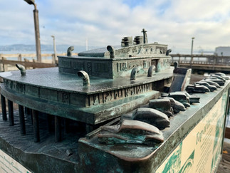 Next we went to the Pier 39 to check out the sea lions as they like to hang out in this area. They were at a bit of a distance across the water though - but we could still see them, and definitely we could hear them. There were two ladies there when we arrived. They had stayed at the hotel nearby and said they could hear the sea lions all night. They also said that the hotel even offered them ear plugs.