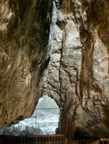 Another one of our awe moments visiting the giant trees is The Trees of Mystery, a private 120 acre park with interesting and educational trails amongst giant trees. Among many others, the main attraction here is an aerial skywalk with swing bridges crossing from trees to trees. First we walked a trail up the side of a mountain and then we climbed a ladder up the trunk of the first tree where the swinging bridge walk started. While walking on the skywalk, over 100 feet high, we would look way down and realize how high we really were above the ground - a little dizzying. But when we looked up, we were still not able to see the tops of the trees, some are well over 200 feet. Really amazing! There is a Sitka Spruce that is 180 feet tall, the cathedral tree which is a group of 9 redwoods that form a “cathedral” and believed to be between 600 - 800 years old. But one of the most interesting and magnificent trees here is the Brotherhood Tree. This tree is huge 19 feet wide, 297 feet tall and is said to be one of the largest living things on earth - the owner of the park says it is at least 3000 years old. When scientists climbed to the top they found quite a few different types of life. There was a bat colony, a flying squirrel nest, ferns, and surprisingly salamanders. Over the years the owners of this private park has allowed for cuttings to be taken from this tree, and new saplings from these cuttings replanted all over the world.