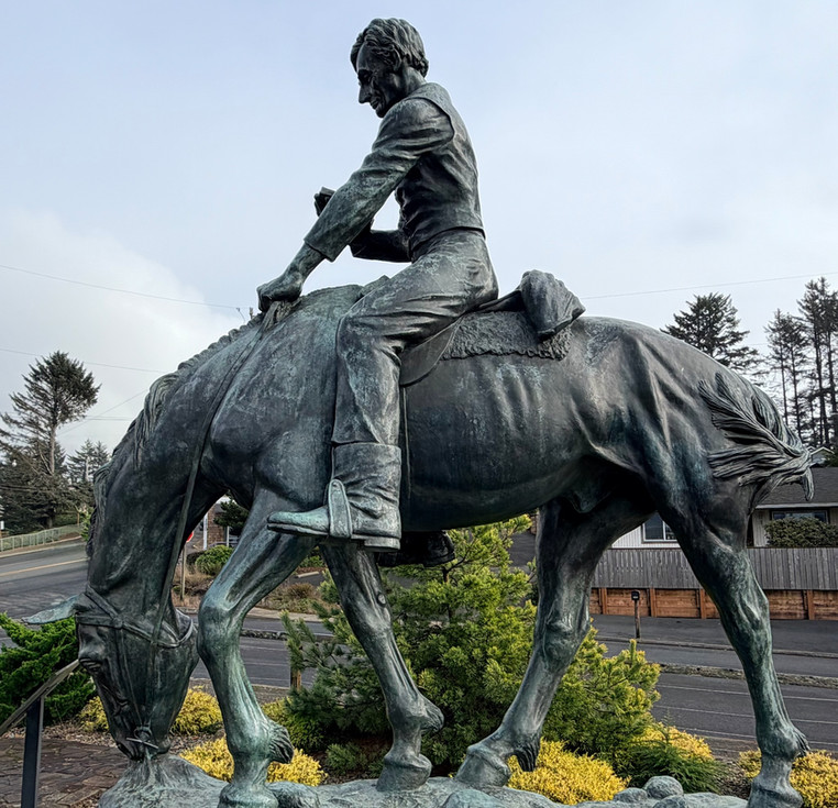 Down the road, in Lincoln City there are two statues with interesting stories. The first is called “Abraham Lincoln Reads on a Horse”. This statue is very well done and the likeness of Abraham Lincoln is spot on. Before becoming a president, Abraham Lincoln was a lawyer. He use to tour the Eight Judicial Circuit route through 14 counties in central Illinois for much of his legal career. He rode horseback on this circuit, often reading while traveling. He travelled with a judge and other lawyers to county courthouses to hear cases. In 1849 Lincoln was offered the job of Oregon’s territorial governor but he turned it down; he instead ran for President. The story behind this statue is that it was sculpted by Anna Hyatt Huntington and given to Lincoln City on the condition that the town never change its name. Lincoln City is actually five smaller coast towns that combined in the 1950s. Instead of naming the new town after one of the old towns, a new name was voted on. The school children of the area chose Surfland but the adults were not keen on the name. In the end they decided to name it after Abraham Lincoln and so it became Lincoln City. Another rather interesting part to this story is that Abraham Lincoln never actually visited Oregon.