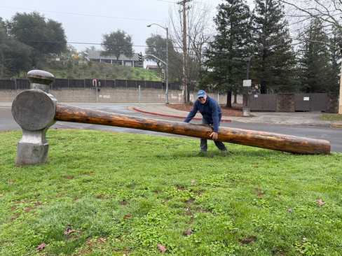 A carpenter’s dream?? No says Guy. 800 Pound Hammer - 21-foot-long redwood handle and a six-foot-high steel hammer head. Healdsburg California