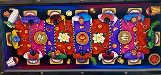 Some of the pieces here are serious and some are a bit more on the quirky fun side. There are Last Supper displays created from Pez dispensers, eyeballs, UFOs, Charlie Brown, cutlery, Day of the Dead paintings, and one made from slippers fittingly named “The Last Slipper”, just to name a few of the fun ones. There is a copy of the original Last Supper painting, an African diorama that is made from the fibres of banana peels, wooden sculptures, and oil paintings. There is a last supper painting of only women around the table. There is a framed depiction of the last supper made by a prisoner in jail; his girlfriend brought it in and a friend of EB’s bought it and donated it to museum. Apparently, this prisoner sold this to collect money to hire a lawyer for his defence, we did not ask about his crime. The museum had just received this piece so EB had not been able to display it properly yet but he did share the interesting story. In the back room, EB was in the process of assembling a large staged exhibit of the Last Supper with life sized statues that had recently been donated to the museum. Visiting this little museum made us laugh. It was just so full of fun, stories, and history. We left this place with a sense of hope - hope that such a little place can make such a big impression on all who come through. We hope to find many more of these little gems.