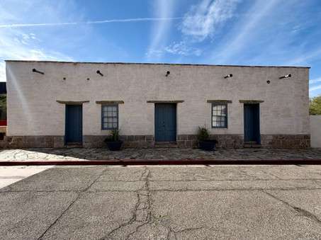 Here in Tombstone is the World’s Largest Rosebush located in the backyard of the Rose Bush Museum. This rosebush was planted here in 1885 from cuttings from a “Lady Banksia Rose” a nearly thornless climbing rose - that originated in Scotland. The cuttings were sent from Scotland to Tombstone to a bride named Mary Gee, who later gave it to her friend Amelia Adamson. The rosebush was first declared the “World’s Largest” in the late 1930s, and has since continued to grow. The plant covers between 8000 to 9000 square feet and is supported by a large trellis system. There are even designated pathways under it for visitors. The trunk has a circumference of between 12 to 16 feet. This rosebush is massive. We were able to easily walk underneath and also to view the top of it from an elevated platform in the yard. From the elevated viewpoint we really got a feel of its enormity. At its highest point it was probably at least 20 feet tall. It is hard to imagine the beauty and aroma of it blooming in the spring with its 200,000 to one million small white roses.