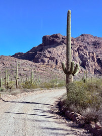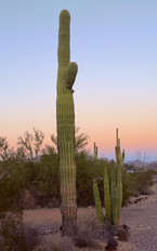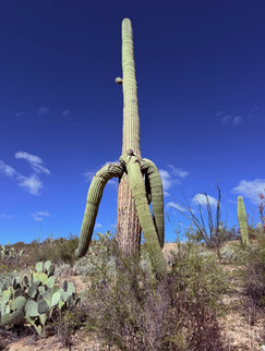 The Sonoran Desert is also famous for the saguaro cactus. Saguaros are very slow-growing, a 10-year-old plant might only be 1.5 inches tall and can live between 150 to 200 years, it is believed some are as old as 300 years. When the saguaros mature they are approximately 40 to 50 feet tall and can weigh over 6 tons when fully hydrated. The vertical "folds" expand like an accordion to store rainwater. Their branches (arms) usually don't appear until they are 50 to 100 years old. The internal part of the plant has a circular frame of woody ribs that supports it. The Saguaro often starts its growth, for the first few years, surrounded by other plants for protection. Once it grows taller and becomes stronger, it takes over the growing area and the other plants die. These are extraordinary plants living in such an unforgiving and hostile habitat, and the opportunity for us to see so many up close was a real treat.